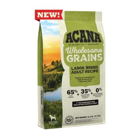 ACANA Wholesome Grains Large Breed Adult Recipe Dog Food is formulated to meet the nutritional levels established by the AAFCO Dog Food Nutrient Profiles for Adult Maintenance.