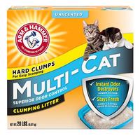 Litter boxes with heavy “cat traffic” have the dual challenge of intense new odors and lingering ammonia odors. Our scientifically proven Multi-Cat formula solved both problems. Fast-action immediately attacks new odors and extended-action destroys lingering odors. Your litter box will be sure to work fast and stay fresh all day. Advanced unscented Multi-Cat strength formula is designed for fragrance-sensitive cat owners. Plus rock solid clumps let you remove the source of odors easily.