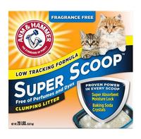 ARM & HAMMER™ Super Scoop™ Fragrance Free Formula is designed for fragrance sensitive cats and owners but still packs effective odor control. This odor-controlling formula including ARM & HAMMER™ Baking Soda and Super Absorbent Clay instantly attacks and destroys odors while locking in moisture for an easy clean up. Plus rock solid clumps let you remove the source of odors easily.