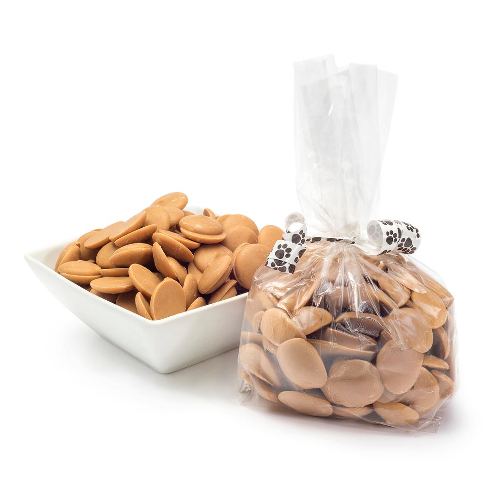 These peanut butter yogurt drops have a dark-roasted peanut butter taste and make a sweet treat. They’re great for training!