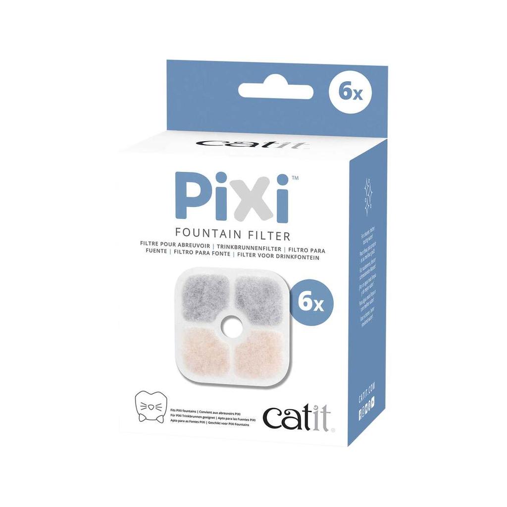 The Catit PIXI Cat Drinking Fountain Filter provides your cat with cleaner, better tasting water. The filters fit all Catit PIXI Cat Drinking Fountains. The filters clean your cat's drinking water in three ways. First, cotton mesh filters out debris. Second, active carbon removes odors and impurities. Third, ion exchange resin softens tap water. Replace the filter every 30 days for optimal results. Only use Catit certified filters with your PIXI Fountain.