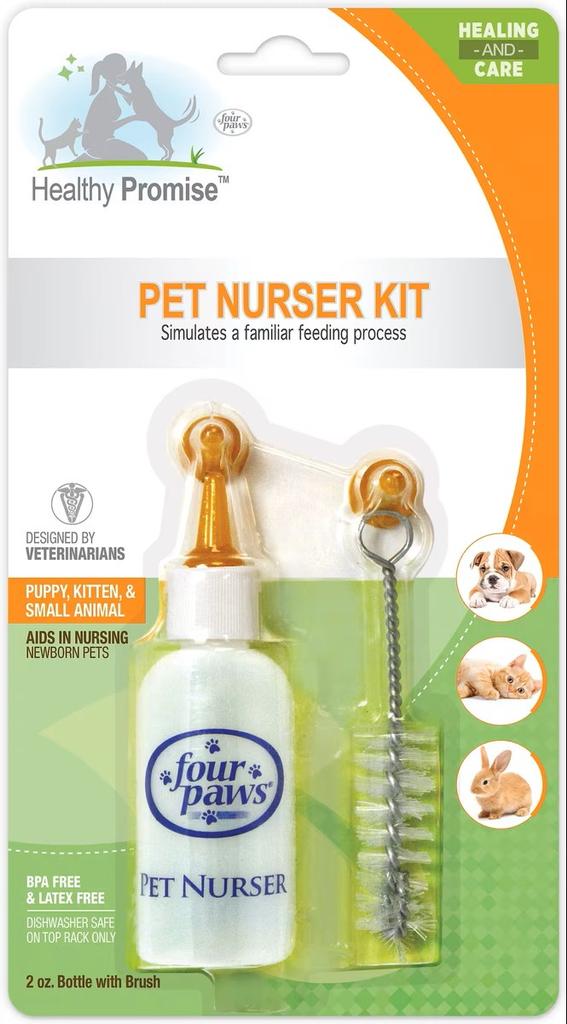 Driven by the passion to keep our furry best friends thriving happily, Healthy Promise supplements and healing & care products help provide our pets a healthy, active, and fulfilling life. Designed by veterinarians, the Four Paws Healthy Promise Pet Nurser Bottles aid in nursing puppies, kittens and other newborn pets. Each pet feeding bottle features pure rubber nipples to simulate a familiar maternal nursing process and includes measurement markings to help monitor nutritional intake. These pet nursing bottles are BPA free and latex free. Plus, they're dishwasher safe when placed on the top rack. Add Healthy Promise pet healing & care products to your furry friend’s routine!