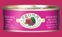 Fromm Four-Star Nutritionals Chicken, Duck, & Salmon Pâté Food for Cats is formulated to meet the nutritional levels established by the AAFCO Cat Food Nutrient Profiles for All Life Stages.