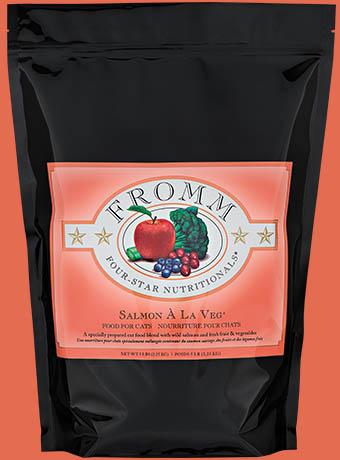 Salmon, Salmon Meal, Whitefish, Pearled Barley, White Rice, Fish Broth, Herring Meal, Dried Egg Product, Peas, Potatoes, Salmon Oil, Chicken Fat, Chicken Liver, Dried Tomato Pomace, Sweet Potatoes, Flaxseed, Natural Flavor, DL-Methionine, Carrots, Apples, Broccoli, Celery, Potassium Chloride, Vitamins, Chicory Root Extract, Salt, Minerals, Cranberries, Yucca Schidigera Extract, Sorbic Acid (Preservative), Taurine, Blueberries, Sodium Selenite, Probiotics.