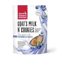 We believe that good dogs shouldn't settle for boring biscuits! With each bite of our Goat’s Milk N' Cookies, your pup gets a delicious dip of rich goat’s milk, juicy blueberries and a touch of sweet vanilla. Each little cookie is slow baked in small batches and full of probiotics to support a happy belly. Flavor meets function in every bite.