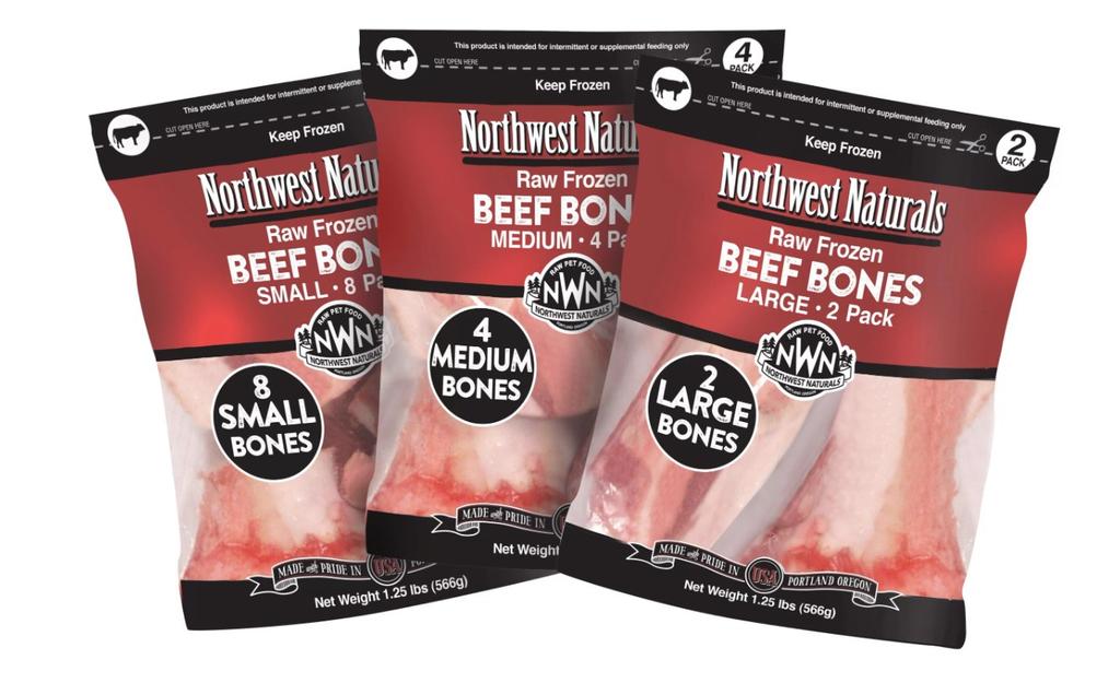 The Northwest Naturals Raw Frozen Recreational Beef Bone Dog & Cat Treat 1 Inch, 8 Pack is made from grass-fed beef cattle sourced in the USA and is antibiotic and hormone free. Raw meaty bones may be added to your pet's daily diet as a treat or a snack. The fresh beef on the outside of the bone and the marrow within is a natural source of protein, fat and minerals. Raw bones are also great at maintaining healthy teeth and gums. 1 Inch Small Bones - 8 Pack (Approx. 1 Inch Small bone for dogs or cats).