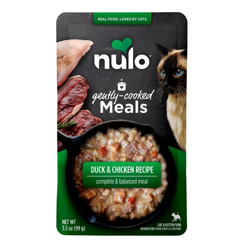 Duck Broth, Duck, Chicken, Brown Rice, Sunflower Oil, Chicken Hearts, Carrots, Sweet Potato, Tomato Paste, Tricalcium Phosphate, Dried Egg, Natural Flavor, Pea Fiber, Potassium Chloride, Guar Gum, Cranberries, Choline Chloride, Salmon Oil, Magnesium Sulfate, Taurine, Salt, Parsley, Iron Amino Acid Chelate, Zinc Amino Acid Chelate, Vitamin E Supplement, Vitamin C (L-Ascorbyl-2-Polyphosphate), Vitamin B1 (Thiamine Mononitrate), Vitamin A Supplement, Vitamin B3 (Niacin), Manganese Amino Acid Chelate, Copper Amino Acid Chelate, Calcium Iodate, Vitamin B5 (Calcium Pantothenate), Vitamin B2 (Riboflavin), Sodium Selenite, Vitamin B12 Supplement, Vitamin B6 (Pyridoxine Hydrochloride), Vitamin B9 (Folic Acid), Vitamin D3 (Cholecalciferol), Vitamin B7 (Biotin), Menadione Sodium Bisulfite Complex (source of Vitamin K activity).