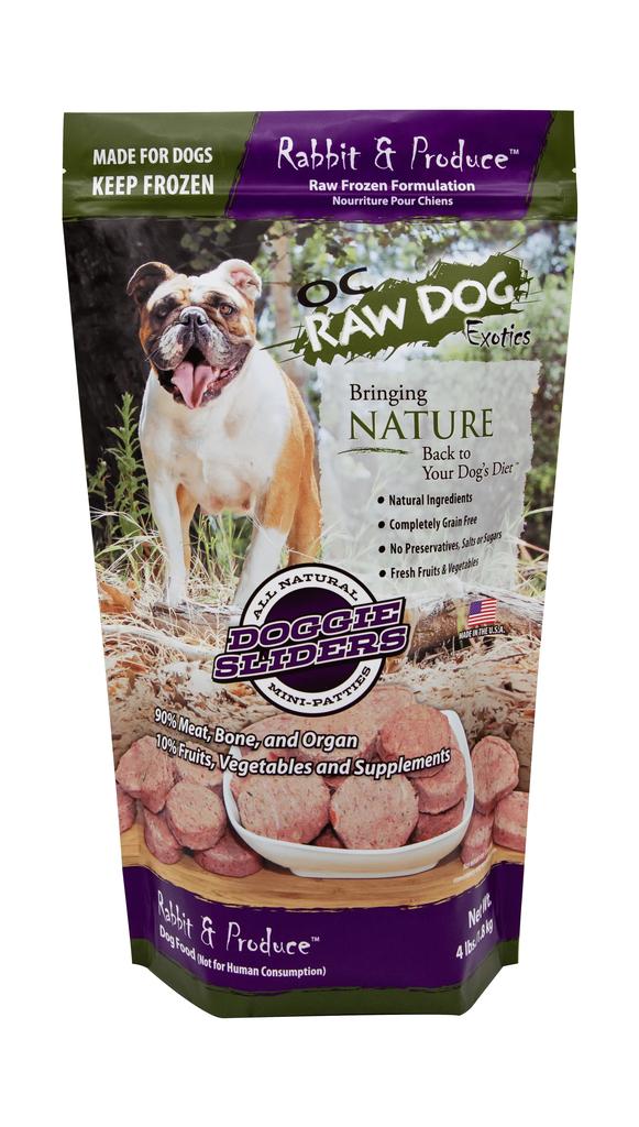 Provide your dog with a lean novel protein meal in a convenient frozen slider format with OC Raw’s Rabbit & Produce Mini Sliders 4lb. Made from premium rabbit meat, ground bone, and giblets sourced in the USA, this recipe is ideal for dogs with sensitivities to more common proteins. Rich in natural protein and nutrient?dense produce, this complete raw formula is designed to support digestion, immune health, and overall vitality while staying grainfree and free of artificial additives.