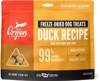 Treat your dog to delicious and nutritious ORIJEN® Freeze-Dried Treats. Packed with animal protein, our Duck Recipe is made with 99%* animal ingredients including nourishing duck and liver. Freeze-dried to lock in their rich nutrients and flavour, they’re packable and perfect for adventures. At just six calories each, ORIJEN Freeze-Dried Treats are loaded with protein and amazing taste.