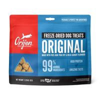 Treat your dog to delicious and nutritious ORIJEN® Freeze-Dried Treats. Packed with animal protein, our Original Recipe is made with 99% animal ingredients including nourishing free-run poultry and wild-caught flounder. Freeze-dried to lock in their rich nutrients and flavor, they’re packable and perfect for adventures. At just five calories each, ORIJEN Freeze-Dried Treats are loaded with protein and amazing taste.
