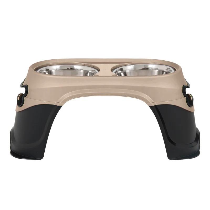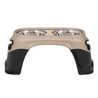 Meet dogs at their level with the Petmate® Easy Reach Diner® elevated feeder and waterer! Any dog will benefit from the improved digestion that comes from eating in a comfortable position, and older dogs will appreciate how easy it is on their joints. Prevents the stooping and discomfort associated with bending down to eat or drink. Helps to improve a pet's posture and digestion No more bowl rattling, thanks to rubber inserts that reduce noise and keep bowls in place. Easy-to-grip bone-shaped cutouts on the side lend practical style, giving pet parents handles for easy lifting. The removable stainless steel dishwasher-safe bowls make the Easy Reach Diner easy to clean. Elevated, spill-free rims help to keep water and food where they belong. Ideal for taller and large breed dogs.