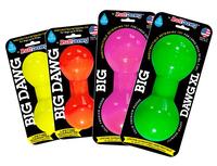 Heavy duty solid rubber Big Dawg is barbell shaped and comes in 2 sizes and an assortment of bright neon colors. These indestructible toys float, bounce and take serious abuse during heavy play, but stay gentle on teeth and gums, so the retreiving can go on and on!