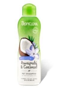 TropiClean Awapuhi & Coconut Pet Shampoo takes your pet’s coat to whiter and brighter heights. In a rich lather, oatmeal prevents dry skin while awapuhi and blueberry naturally enhance all colors. Our unique whitening formula gently cleans and conditions while making your pet’s coat brilliantly beautiful. Natural protein highlights all colors naturally, so it works well on tricolor coats, too. Great for dogs and cats of all ages. Best when used along with TropiClean Pet Conditioner for a coat that’s soft, bright, and oh-so-fresh.