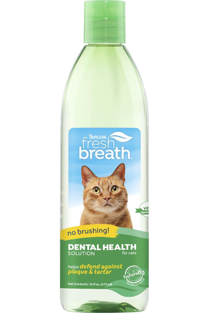 Oral care is about more than making your cats’ smiles sparkle—it’s an important component of their overall health. In fact, 70% of cats begin to show signs of oral disease by age 3. With Fresh Breath Dental Health Solution for Cats, cats can benefit from daily plaque and tartar defense, simply by drinking from their water bowl. Easy to use for both you and your cat—no brushing required!