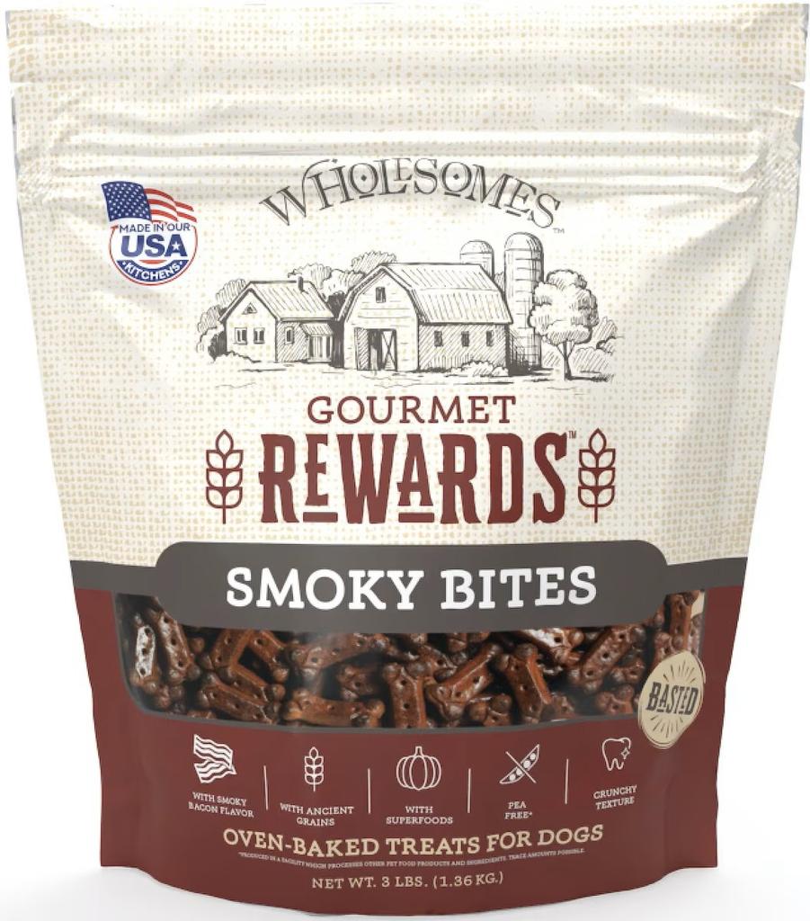 Made with chicken meal and a smoky, bacon flavor your dog will go head over paws for. Crunching action helps remove loose food particles and tartar, supporting healthy teeth and gums. Fortified with vitamins and minerals to support your pal’s overall health. A nutritious treat or training reward to supplement your dog’s diet. Proudly made in the USA.